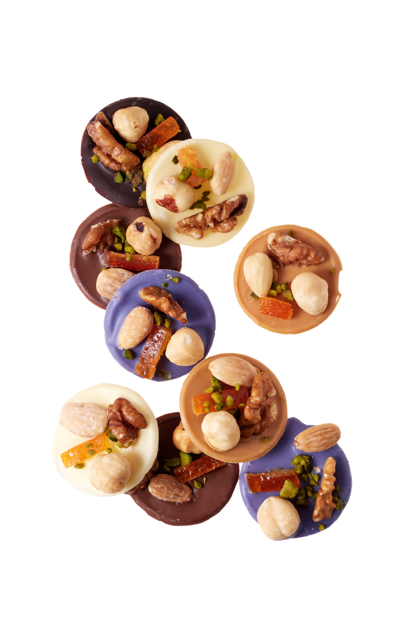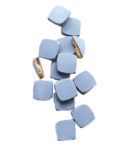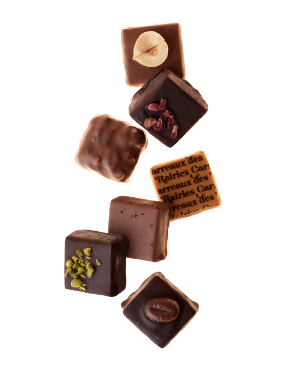 Découvrez ou redécouvrez ce délicieux et craquant carré de nougatine caramélisée aux amandes et aux noisettes, délicatement enrobée d’un chocolat bleu très parfumé !